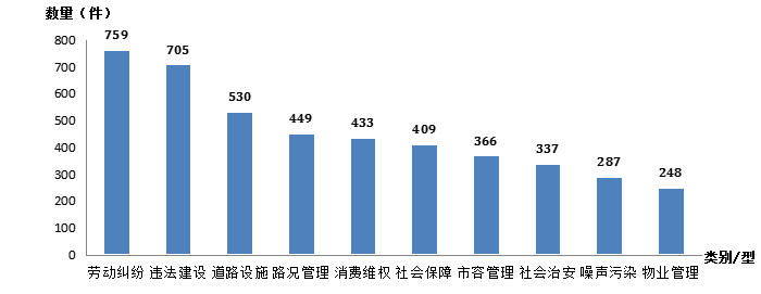 本月,工单受理涉及89个承办单位中的68个,工单数量前十的单位为: