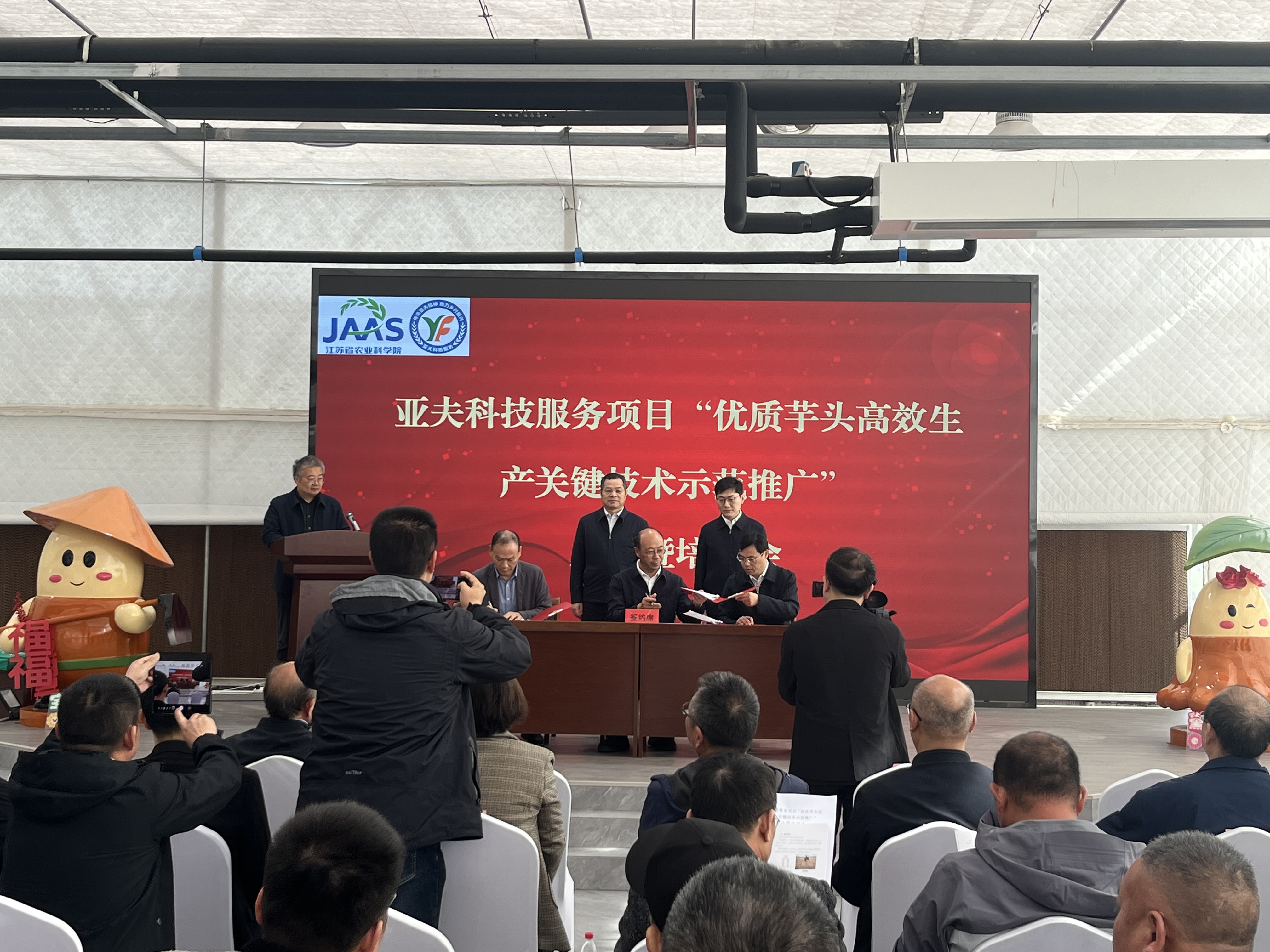 10月31日上午,“亚夫科技服务项目‘优质芋头高效生产关键技术示范推广’启动暨培训会”在江苏省靖江现代农业产业园区成功举办。本次活动由江苏省农业科学院经济作物研究所、靖江市农业农村局、江苏省靖江现代农业产业园区管理办公室联合主办,来自省农科院专家、亚夫项目参与人员和靖江市镇领导等参加活动。