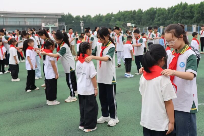 实验学校少工委举行“强国复兴有我,争当新时代好少年”二年级入队仪式,251名学生在鲜红队旗下光荣加入中国少年先锋队。庄严的入队仪式,不仅为少先队员们系上了红领巾,更系紧了传承的纽带。新时代的少先队员们将扬帆启航,让红色基因代代相传,让强国复兴的信念在心中扎根生长。