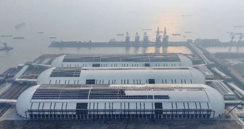 企业自主设计“智能化全封闭通道+料仓”,让运来的煤炭由卸船机进入600米的封闭式皮带廊道,直达全封闭料仓。码头腹地的巨型料仓将煤炭稳稳“罩”住,仓内设置雾炮、热成像追踪仪、粉尘浓度监测仪等智能装备,不让一粒粉尘溢出料仓,从根子上摆脱传统码头卡车运煤、露天堆煤带来的治理难题。