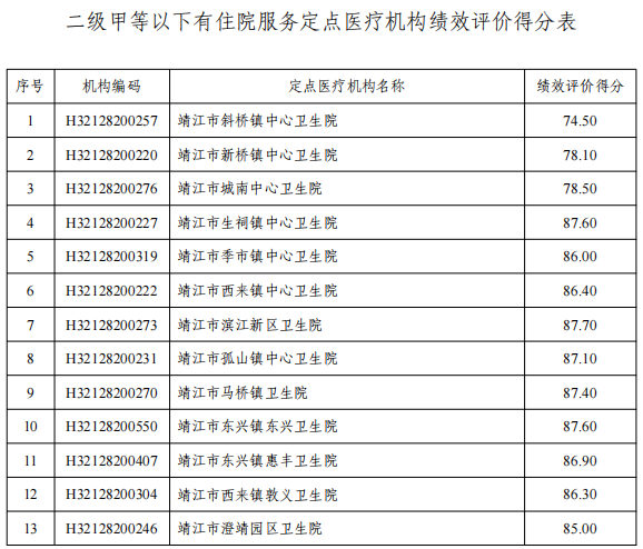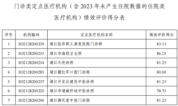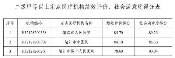 2023年靖江市定点医疗机构医保绩效评价得分情况公示