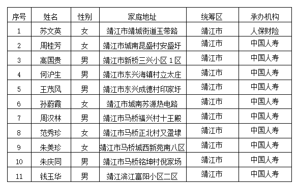 承办机构:中国人寿保险股份有限公司靖江支公司
