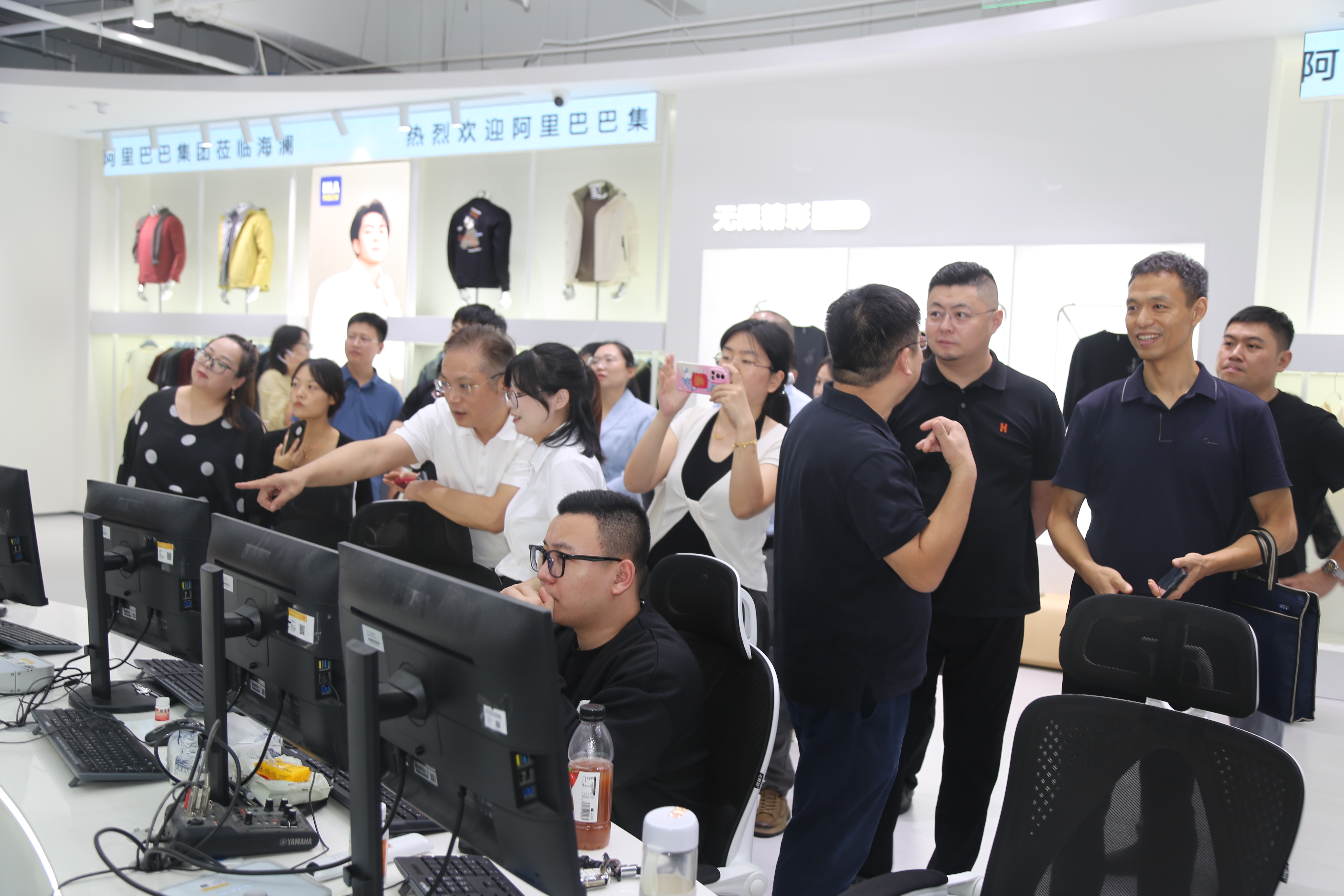 随后,参会人员走进江苏圣澜服饰创意有限公司。在智能化生产车间,自动化生产线高效运转,智能裁剪、缝制、检验等设备精准作业,实现“降本、增效、提质”。企业负责人介绍系统优势,参会者直观感受智慧技术对传统纺织业的变革。服饰文化科普中心通过实物、影像与互动装置,展现纺织产业发展历程及圣澜在设计创新、绿色生产上的实践,拓宽了大家对纺织产业多元发展的认知。在随后召开的跨江融合产业链协同创新交流座谈会上,园区代表介绍了推进跨江融合、优化产业布局的举措,强调产业链协同创新的重要性;江阴、靖江两地新联会代表分享服务产业发展的经验,表达深化合作意愿;江阴中专教师代表从产教融合角度,提出人才培养建议;圣澜服饰结合企业转型,探讨产业链协同路径。自由交流环节,众人围绕产业链升级、技术推广等议题建言,氛围热烈,达成多项合作共识。