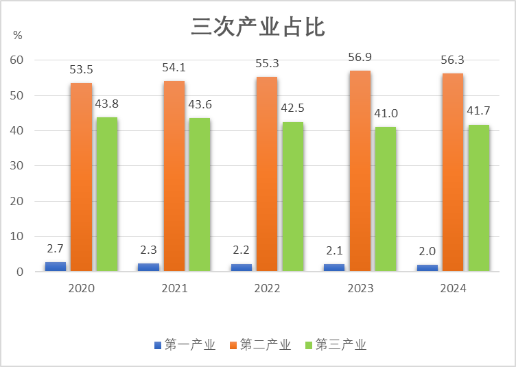 图2 2020-2024三次产业增加值占GDP比重